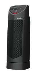 This 14-inch portable, personal ceramic tower space heater is perfect for the bedroom, living room or home office and the versatile size makes it perfect for tabletop or floor use. Small but mighty, this electric heater generates 1500 watts of comforting warmth and oscillates to spread warmth around your space. This portable heater features simple electronic touch controls and 2 quiet speeds. Plus, the adjustable thermostat mode automatically turns heater on or off to maintain room temperature while conserving electricity. With its built-in carry handle, it is simple to take with you where needed. Safety features include overheat protection, ceramic element, and cool-touch exterior housing. Comes fully assembled and ready to use. For indoor use only. 3-year limited warranty. Condition: New