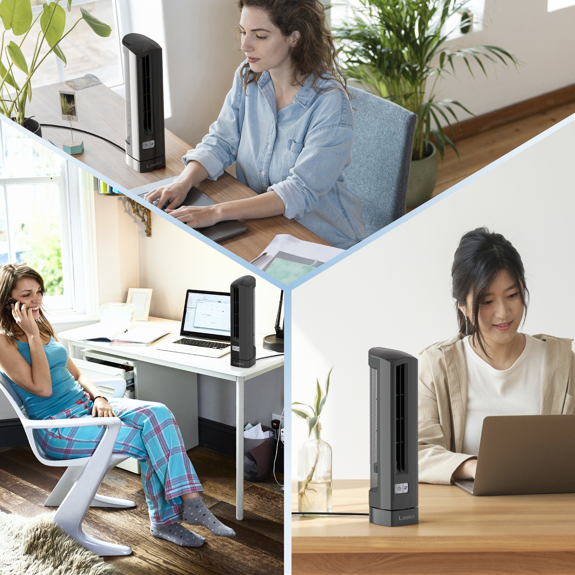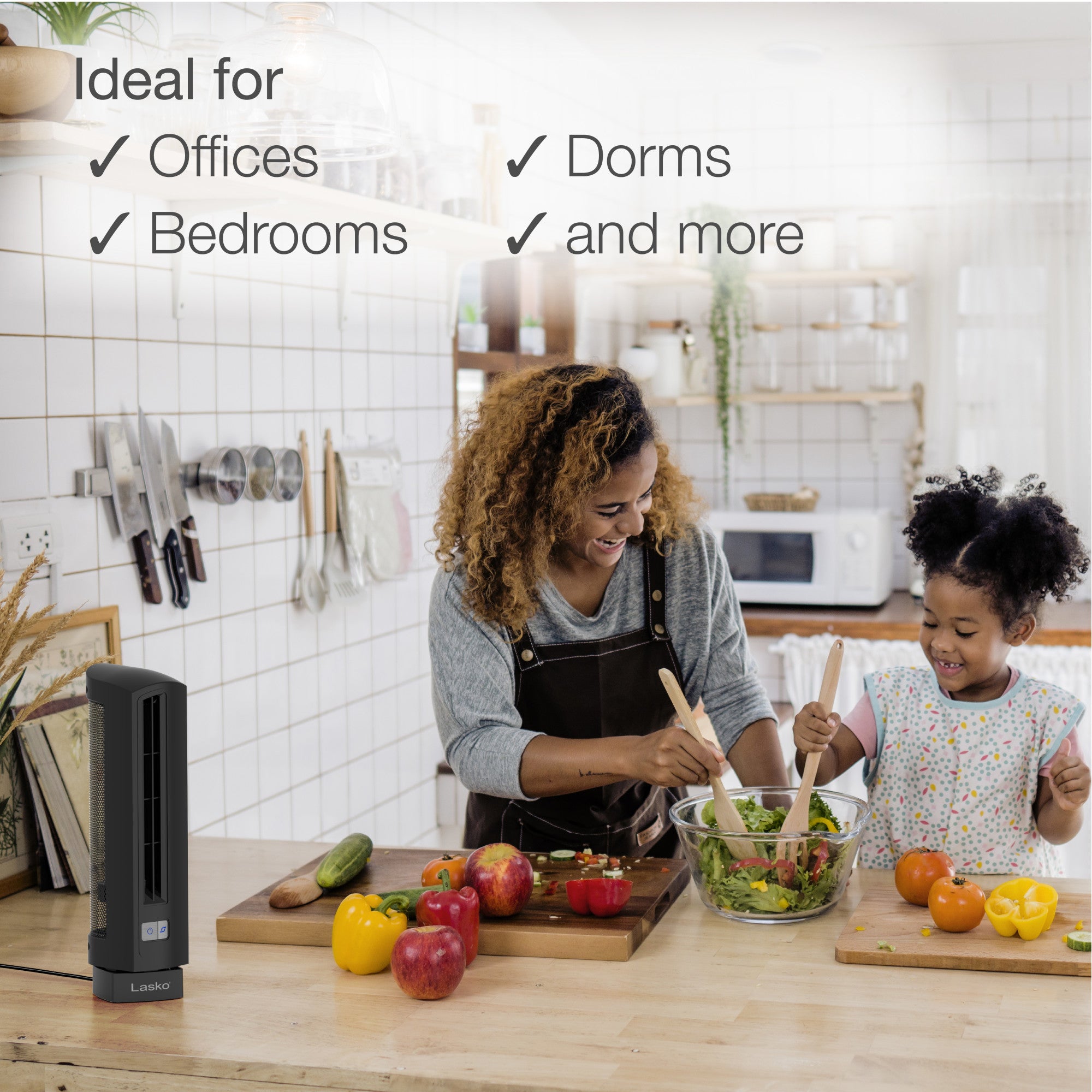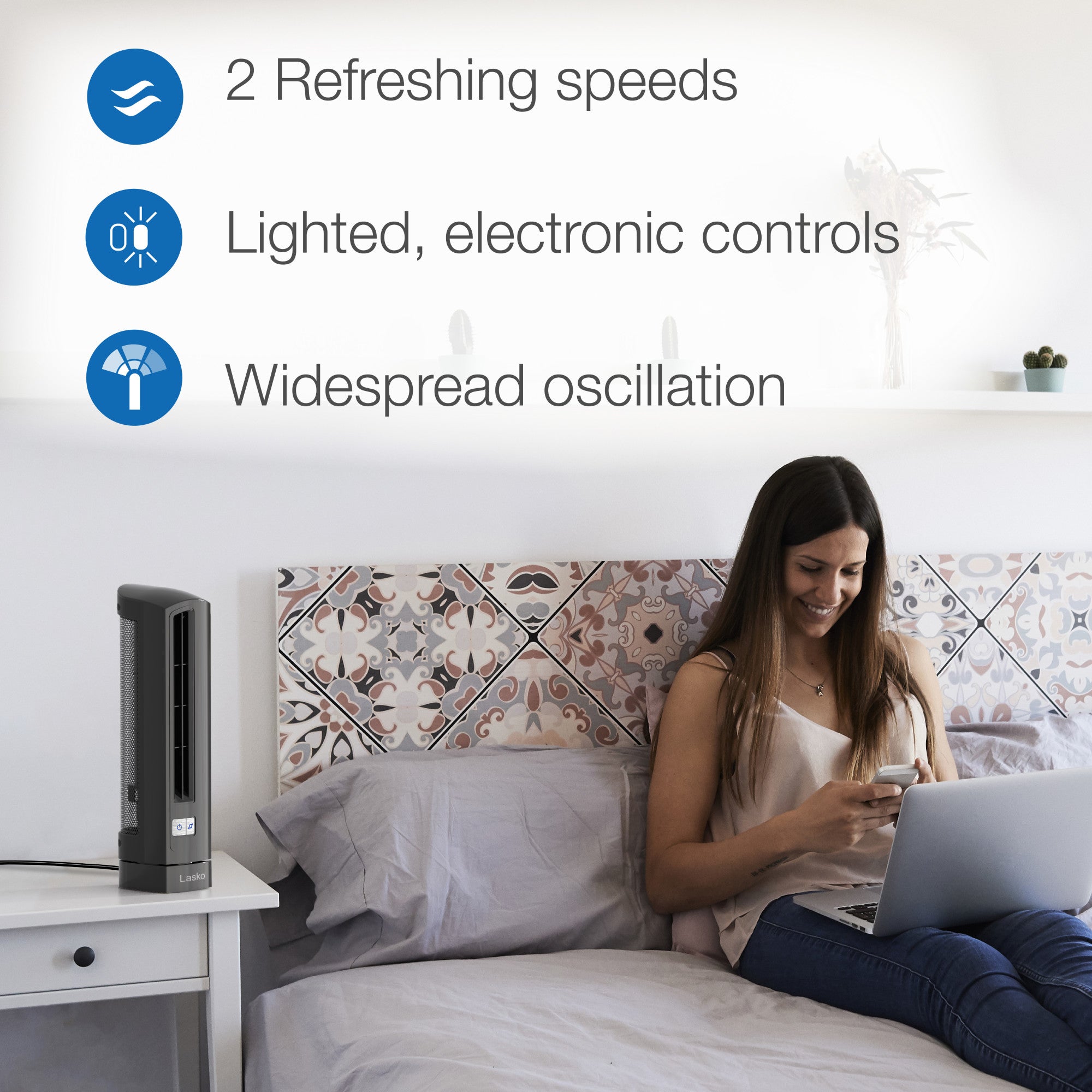 Keep your personal space cool with an Air Stik® Ultra Slim Oscillating Fan by Lasko. This elegant, streamlined design is ideal for when space is at a premium. Features lighted electronic controls with 2 quiet speeds, widespread oscillation for even air flow and comes fully assembled for immediate use. Includes a trusted, fused safety plug technology for peace of mind. 1 year limited warranty.